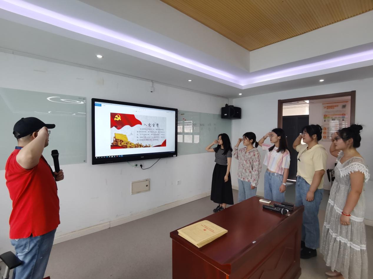 首先,各位发展对象依次阐述了自身的入党经历、剖析了自身的入党动机,表示在提交入党申请书的这段时间里更加坚定了自己的入党意愿。支部内正式党员就是否接收罗丹、宋芬、南婷、王琢、詹超逸五位同志为预备党员的事宜进行投票,上述五位同志均以全票通过。随后,由支部书记左昌盛老师的带领下,五位同志进行了庄严的入党宣誓。