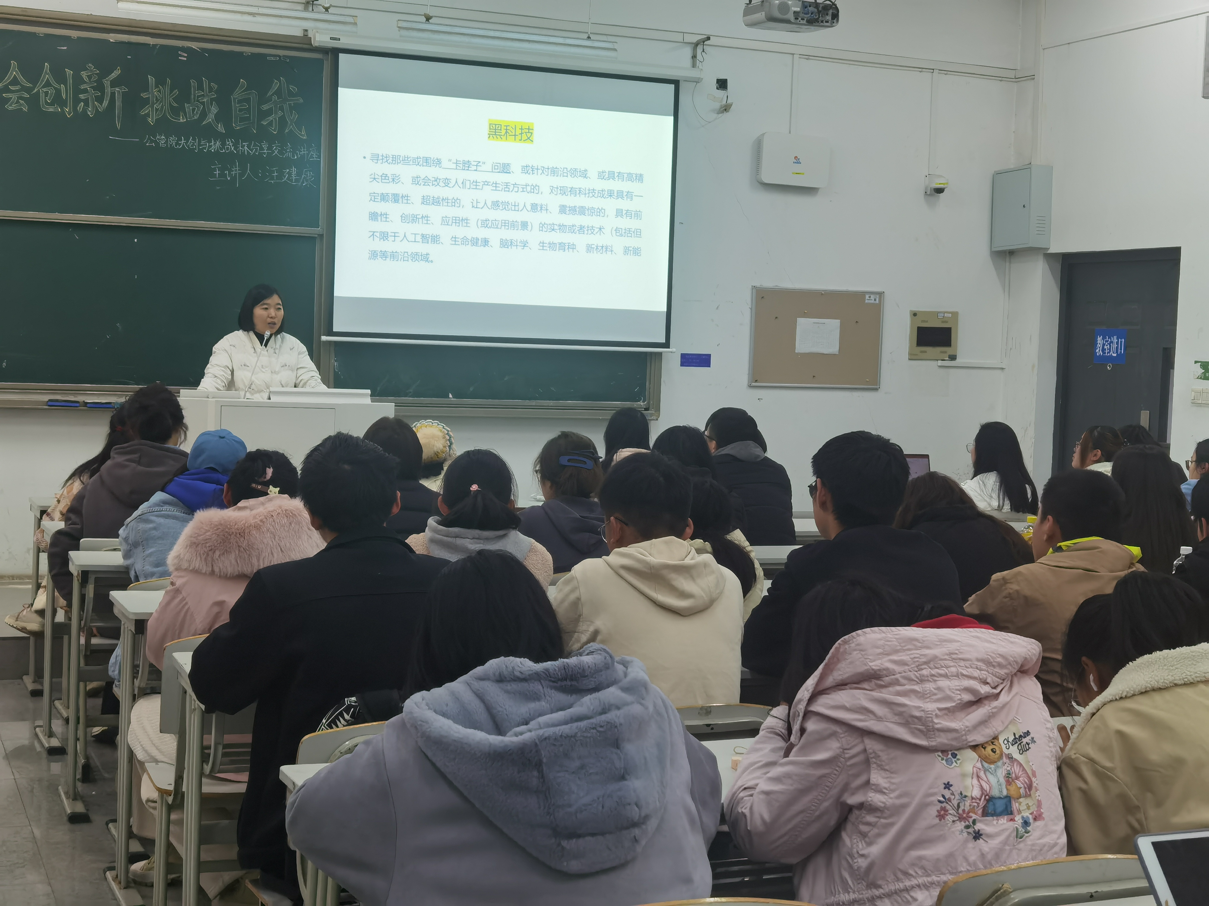 最后,汪老师介绍了南京审计大学关于学科竞赛和校级大创项目申报的奖励学分认定与管理方法,并表达了对六合至尊 的学子们的殷切期待,希望大家在大学四年努力奋斗,抓住机会,成就精彩人生!