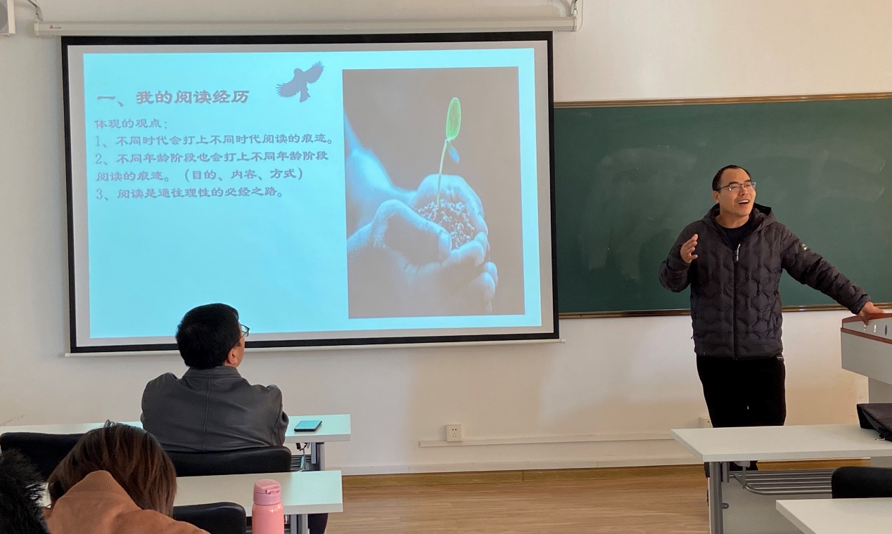 袁建军副教授形象地将阅读比作是“采得百花成蜜后,为谁辛苦为谁甜”的过程,肯定了阅读能够满足好奇、追求幸福的重要价值。在当今时代背景下,大家接触的多为碎片化知识,而阅读是一个完整的、系统的过程,有利于研究生知识体系的构建。最后,袁建军副教授指出,阅读好的作品不仅可以弥补自己在某一领域的知识空白,还可以提升思想高度,并再次诚恳地建议大家多阅读思想性作品。