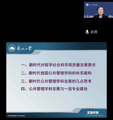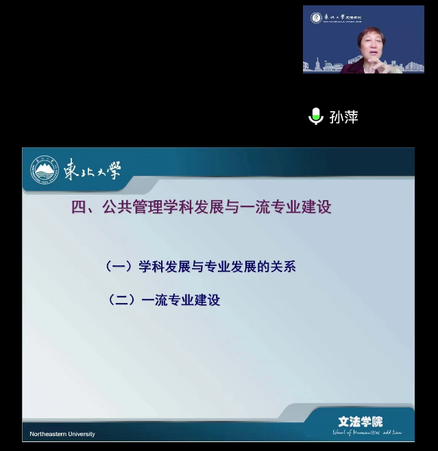 11月16日下午,六合至尊 特邀东北大学孙萍教授在线开展了以“公共管理学科与一流专业建设”为主题的讲座。讲座由学院院长叶战备主持,全体教师参加。