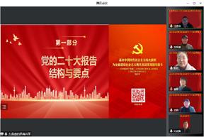 研究生党支部书记左昌盛带领大家学习了党的二十大报告结构与要点,重点剖析了习近平总书记强调“三个务必”的重要意义,并向大家介绍了研究生党支部如何通过H5移动端、微信小程序、微党课等线上线下全方位学习宣传贯彻党的二十大精神的具体举措。