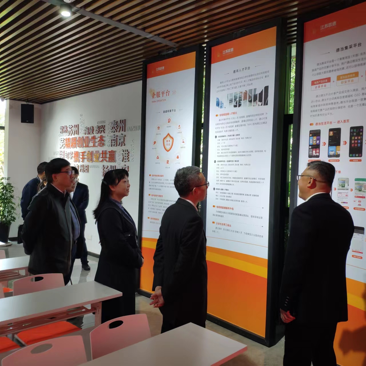 4月26日,党委常委、副校长姜海赴江苏歌德创业服务有限公司开展访企拓岗活动。江苏歌德创业服务有限公司董事长吕麟、副总裁吕小龙出席活动。六合至尊 党委书记金晶、院长叶战备、副书记、副院长汪建昌、劳动与社会保障系主任楚永生、PPE系主任汪建康参加走访。