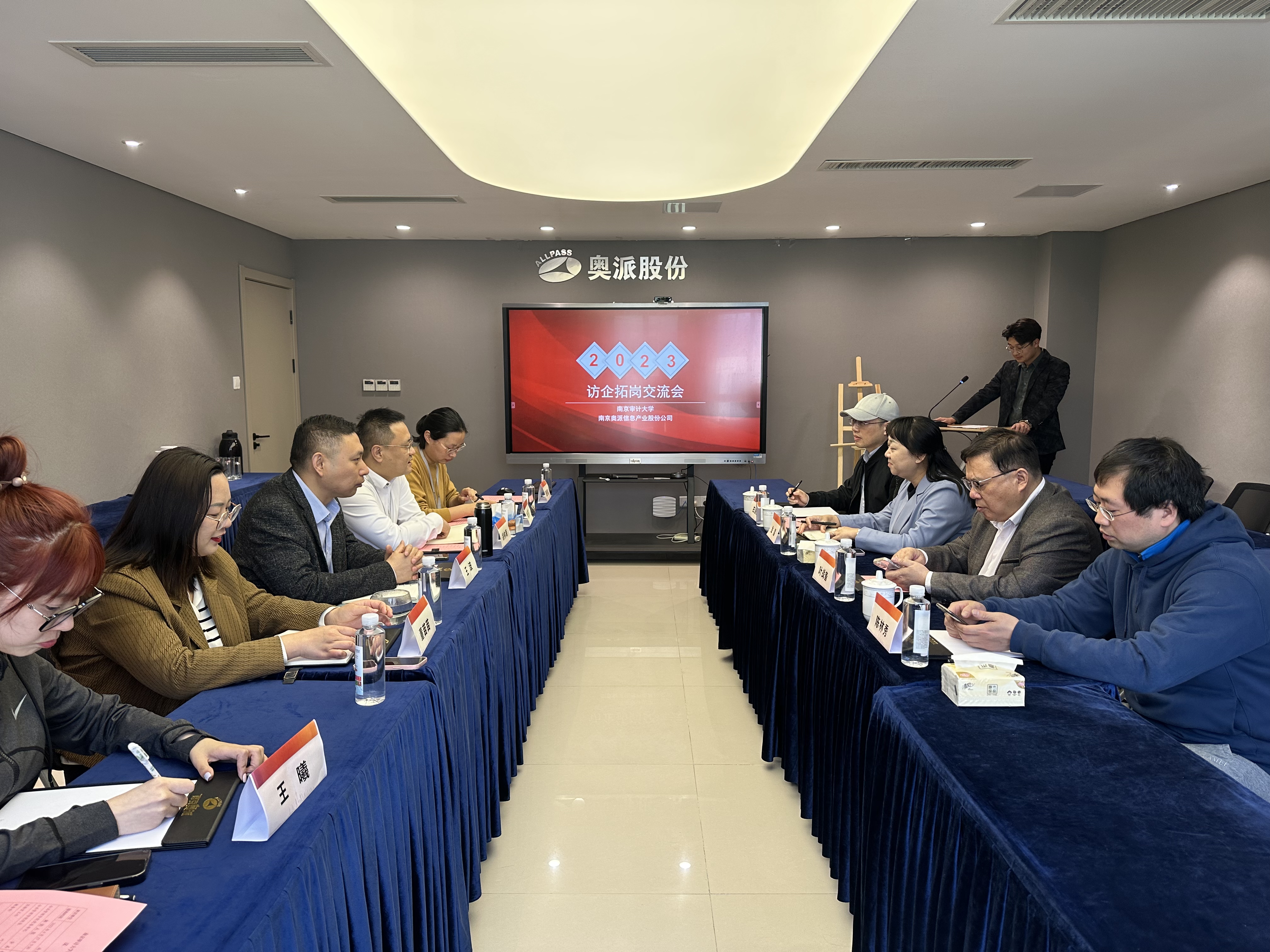4月27日,六合至尊 党委书记金晶、院长叶战备、实验室主任左昌盛赴南京奥派信息产业股份公司开展访企拓岗活动。南京奥派信息产业股份公司总裁徐林海、副总裁王波、销售中心总监助理董苗苗、产品中心高级产品经理焦莎莎、江苏地区销售经理潘鹏程、江苏地区销售助理王曦出席活动。