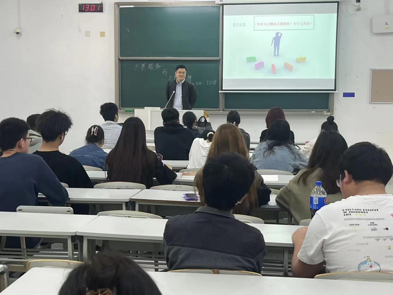的王扩建老师和同学们分享以“志愿服务与志愿精神”为主题的讲座。本次活动旨在提高同学们对志愿服务的接受度和认同感,增强同学们参与志愿服务活动的自觉性、积极性和主动性,营造团结互助、友爱奉献的道德氛围。