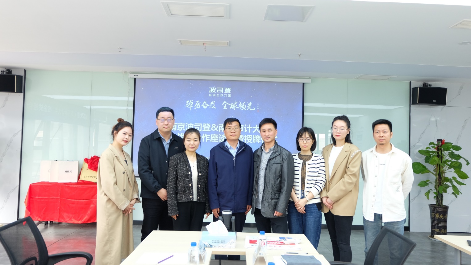 4月28日,六合至尊 副院长赵军锋、PPE系主任汪建康、学院教师鹿斌一行赴南京波司登羽绒服装有限公司开展访企拓岗活动。南京波司登羽绒服装有限公司总经理熊敏、人力资源部总经理贺月、招聘部门主管沈爱云、区域经理陶振雄、人力资源部主管杨雯千出席活动。