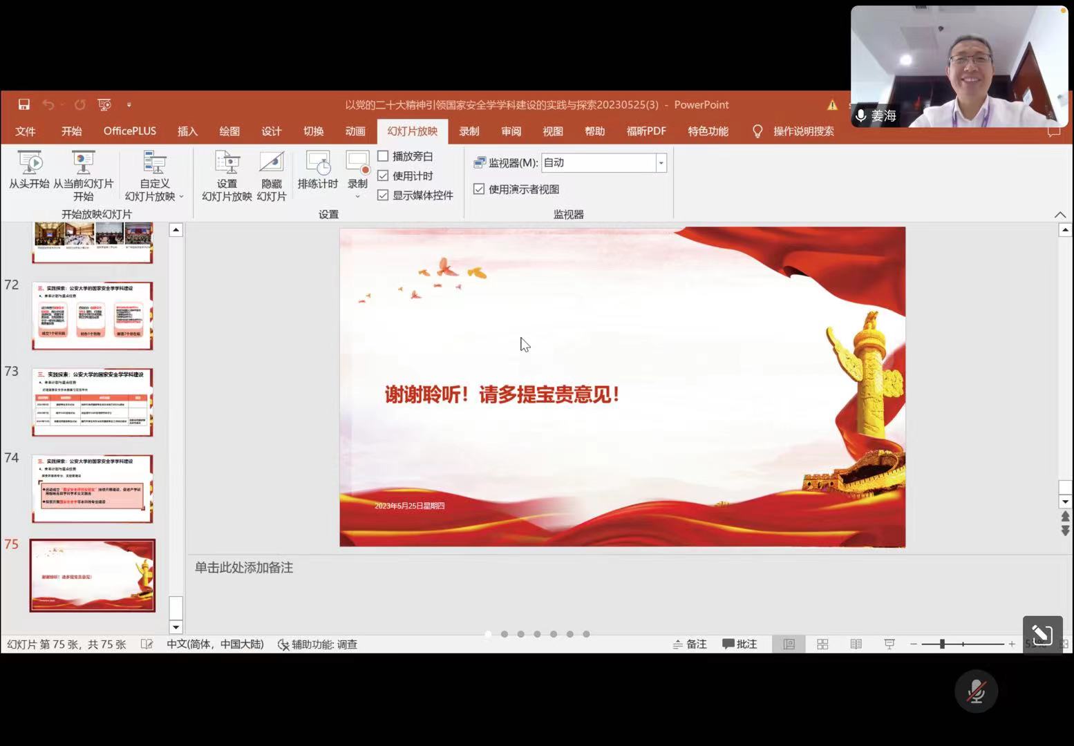 最后,姜海副校长对本次讲座发表总结并对学科建设作出指示。他对李教授的分享表示衷心感谢,并表达了学校对于国家安全学学科建设的高度重视。姜海副校长认为,此次研讨会本质上是一次生动而又全面的国家安全学指导课,六合至尊 需结合学校发展实际,进一步梳理学科特色,寻找与国家安全学融合发展的切入点,并诚挚邀请李教授深入指导我校国家安全学学科建设方向。