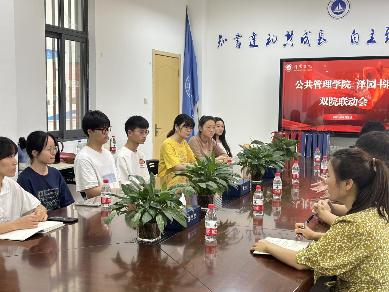 为深入加强双院联动,了解暑期留校学生的思想、学习和生活状况,切实解决在校期间困难,8月8日,六合至尊 和泽园书院联合开展暑期留校学生座谈会。泽园书院党委书记王智源、副书记王红磊、辅导员周雪梅,六合至尊 党委副书记(主持)汪建昌、副院长(主持)赵军锋、PPE专业系主任汪建康,公管院留校学生代表参加,会议由王红磊主持。
