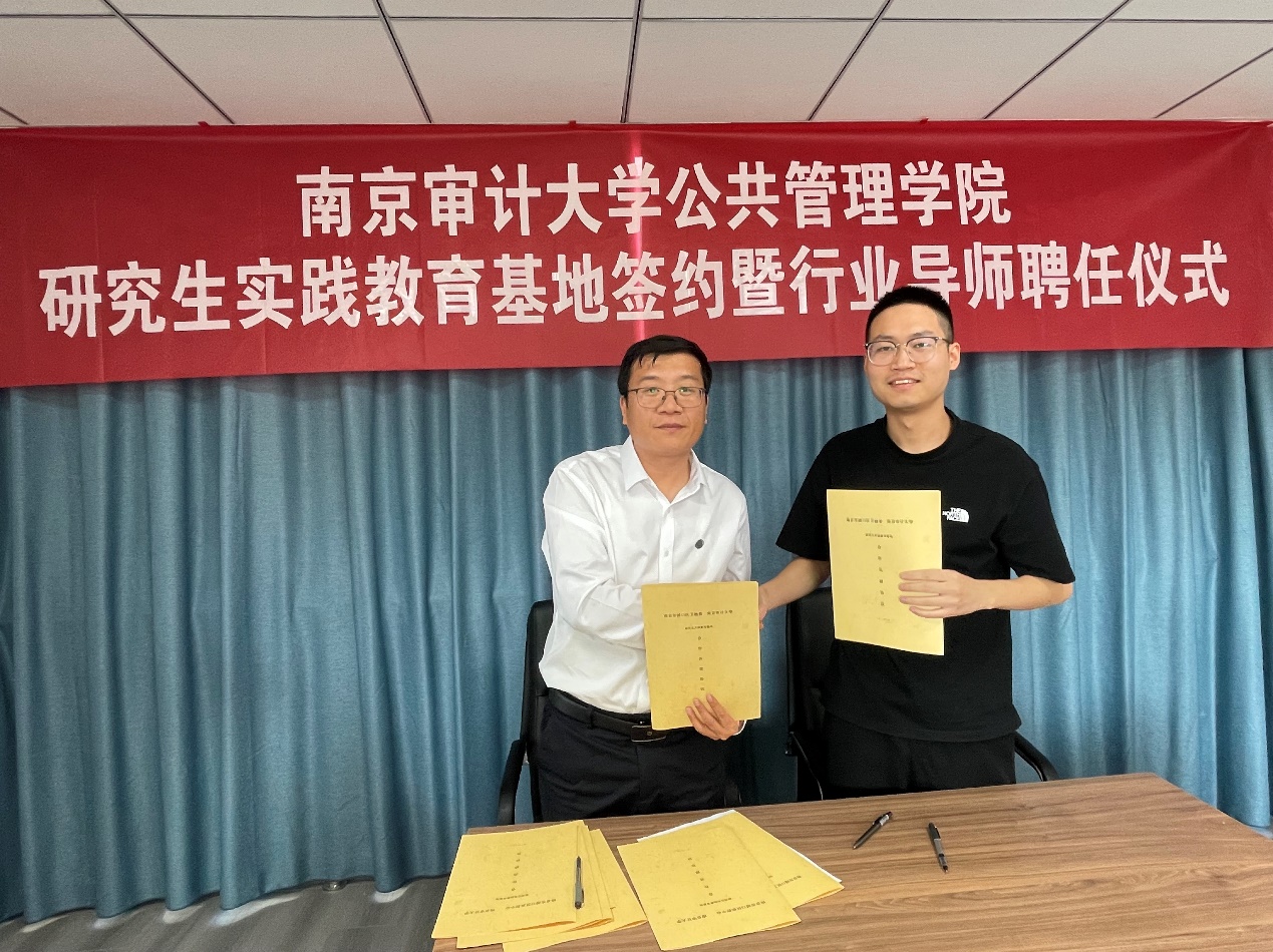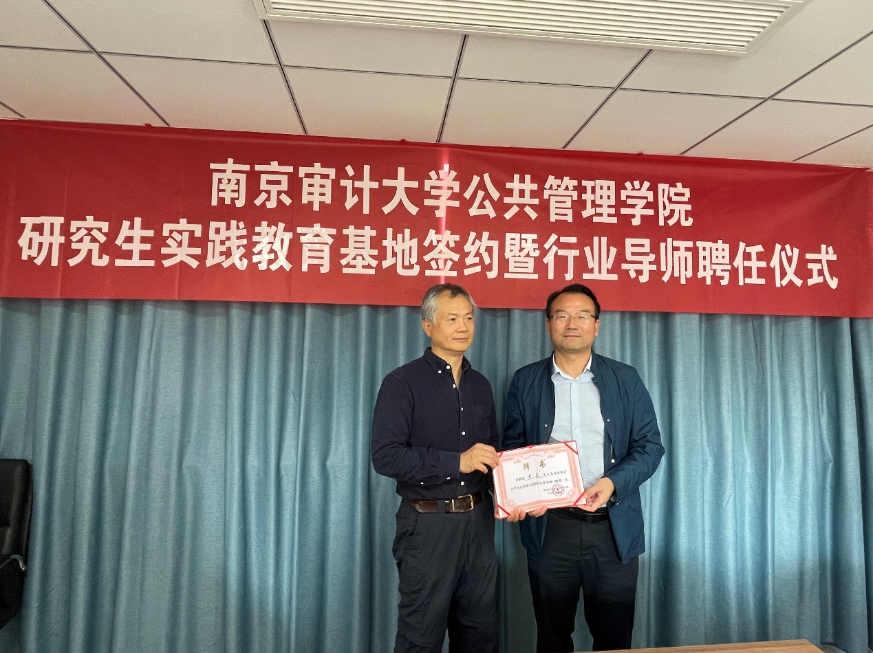 仪式上,双方达成合作共识,就共建研究生实践教育基地签约,随后金太军教授为聘任行业导师颁发聘书。