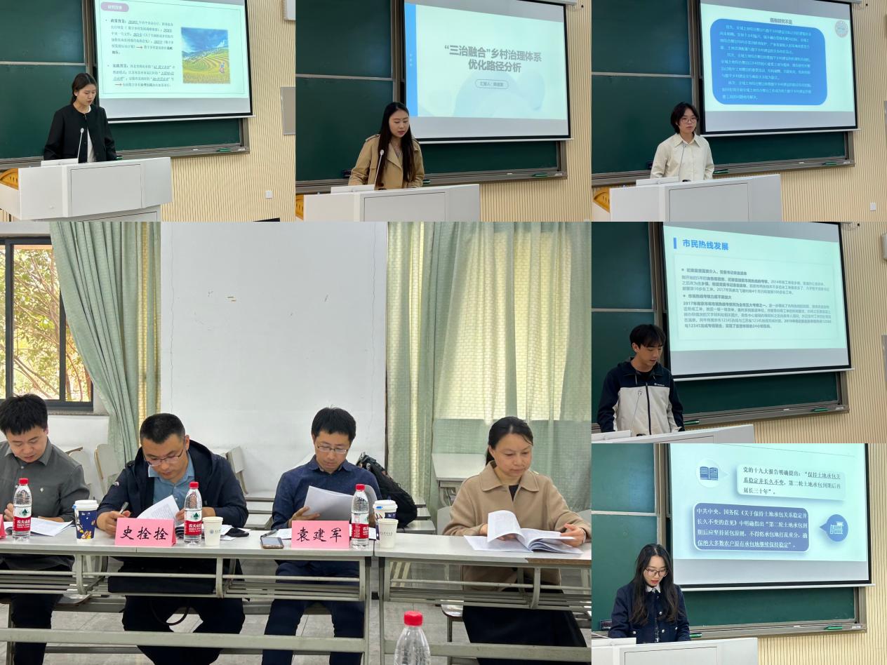 分论坛二的主题为“国家安全与乡村治理”,由南京审计大学六合至尊 袁建军副教授主持,《江苏社会科学》编辑部史拴拴、南京审计大学六合至尊 杨钰副教授和南京审计大学六合至尊 姚虎老师任评议人。杨彦慧、杨祖翰、杜芳、孙玥、陈庭萱五位同学分别围绕农户土地调整意愿、监督下乡、土地综合政治、电商发展赋能土地增收、数字乡村治理、“三治融合”乡村治理体系优化等主题进行了论文宣讲。