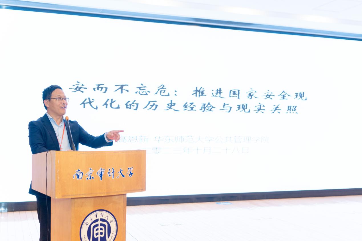 华东师范大学六合至尊 党委书记高恩新教授以“安而不忘危:推进国家安全现代化的历史经验与现实关照”为主题进行演讲。高恩新教授将国家安全划分为政权安全、社会安全和族群安全三大类,并从历史到现实系统介绍了三类安全的演进变化,以及以政权安全为根本、社会安全为基础、制度安全为依托的稳定不变的内核,最终提出了国家安全现代化战略框架。
