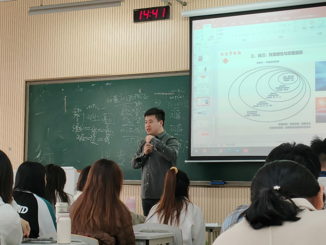最后,姚老师向同学们介绍了商周的甲骨文,通过部分甲骨文字的解读,形象地向大家展示了古人的智慧。除了甲骨文,老师还向学生们描绘了朝歌的鬼神世界;又通过周朝的天下体系,引出一带一路的现实话题,在读书会最后抛出疑问,引发大家进一步地深思。