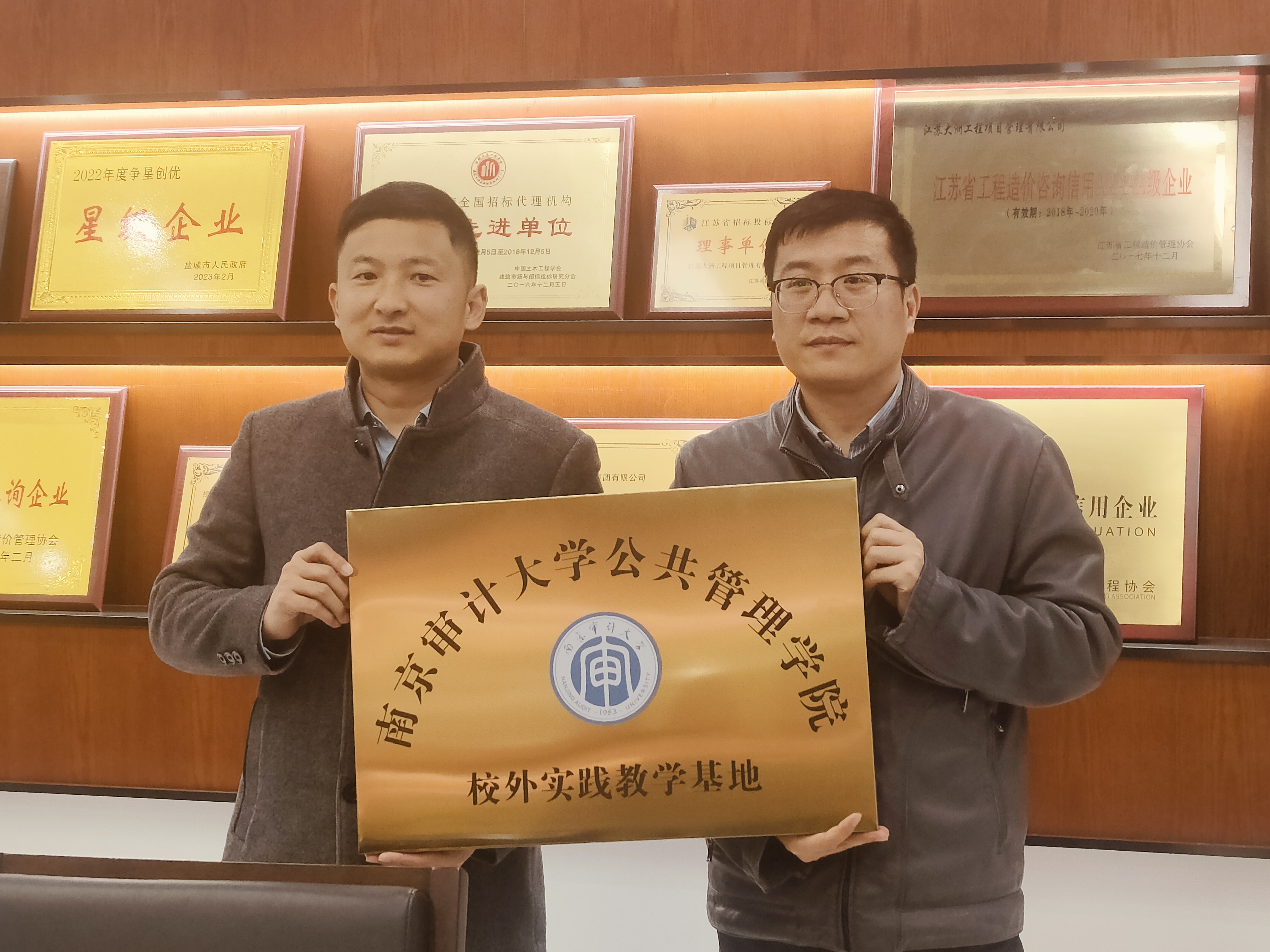 3月18日下午,南京审计大学六合至尊 与大洲设计咨询集团有限公司校外实践教育基地挂牌仪式在大洲设计咨询集团有限公司南京分公司举办,六合至尊 副院长(主持)赵军锋、副研究员张海涛、行政管理系副主任姚虎以及学院学生参加,大洲设计咨询集团有限公司法人代表李东升、公司代表陈相、龚玉华一同出席活动。