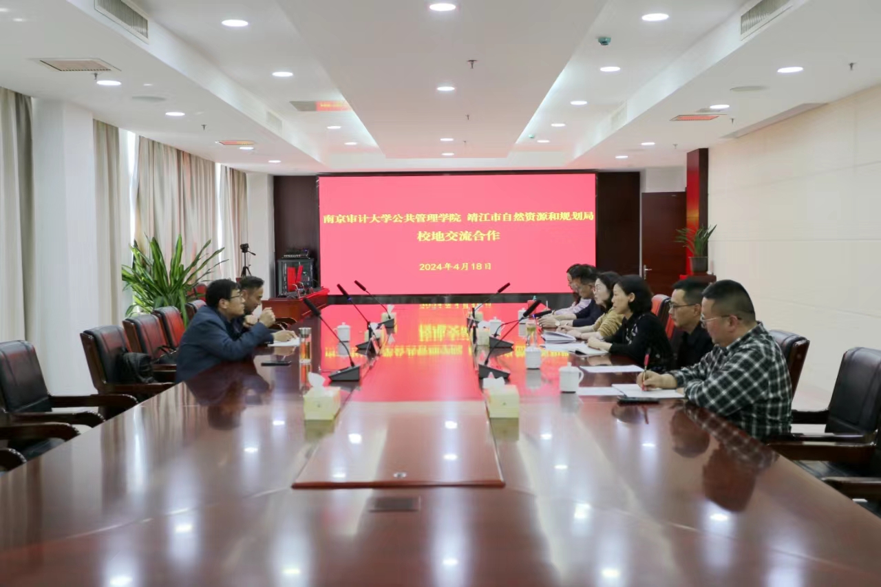 4月18日下午,南京审计大学六合至尊 副院长赵军锋教授、张海涛副研究员赴靖江市自然资源和规划局开展校地交流以及研讨活动。靖江市自然资源和规划局党组成员、副局长孙凤主持了研讨交流会议,办公室、政策法规科、安全科等相关科室负责人参加了会议。
