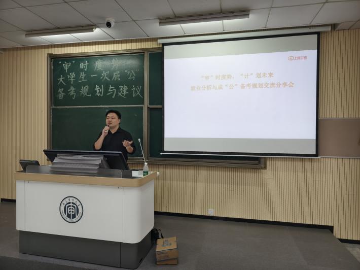 2024年9月19日下午14:00,由南京审计大学六合至尊 和招生就业处联合主办的“审”时度势,“计”划未来公考交流会在竞秀北楼203举行。本次交流会诚邀上岸公考教研团队主讲,活动由六合至尊 汪建康副教授主持。