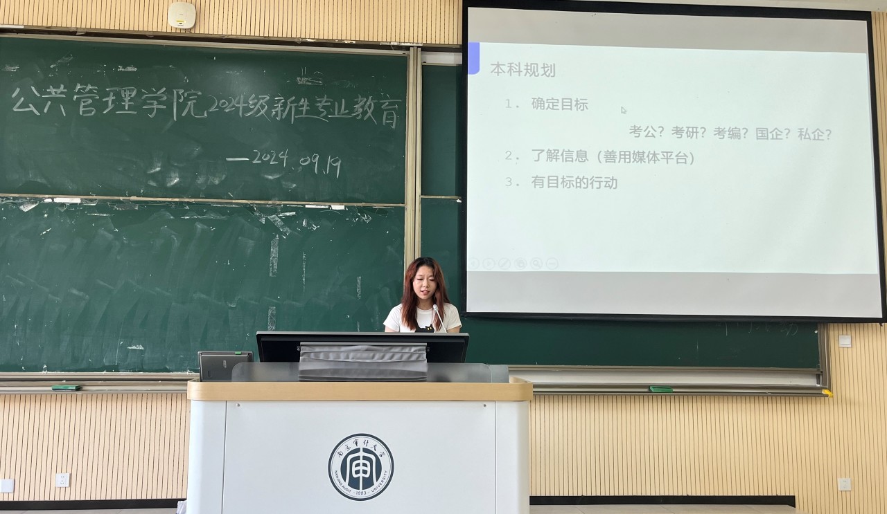 祝欣雨学姐首先讲述了自己的本科规划经历,包括如何确定未来的职业目标(如考公、考研、考编、进国企或私企等),并鼓励新生们明确自己的发展方向。其次,学姐分享了如何收集和利用信息,特别是如何善用媒体平台获取有用资源。最后,学姐讲述了自己在实现目标过程中的实际行动和经验,为新生们提供了实用的学习方法和备考策略,帮助他们更好地规划大学生活和未来职业道路。