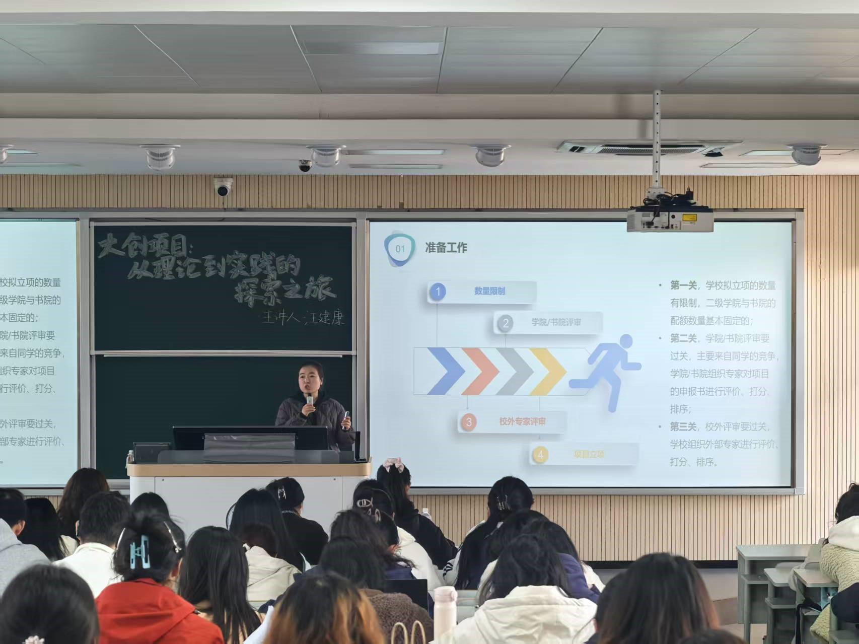 大创并非简单的学术任务,而是集创意构思、实践探索、团队协作于一体的综合性活动,能激发大学生创新思维,培育创业能力。本次讲座汪老师涉及大创项目准备工作中的如何确定选题、阅读资料方法以及项目方案等内容,为同学们带来创新创业项目备战指南,助力大家能在未来的项目计划中大放异彩!